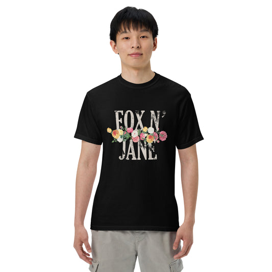 FOX N' JANE Unisex garment-dyed heavyweight t-shirt | Front Print | Off Black/Multi