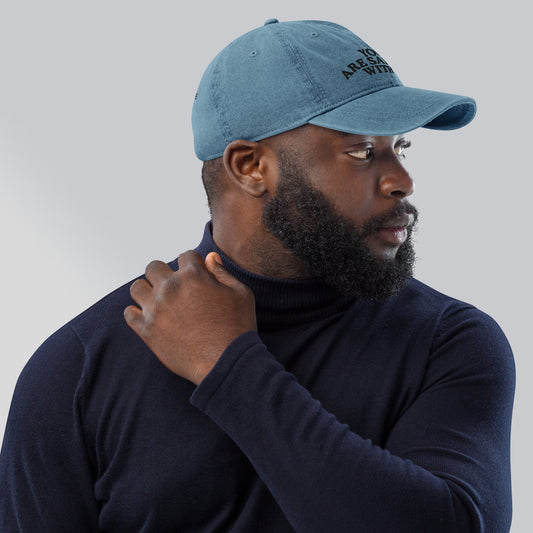 YOU ARE SAFE WITH ME | Denim Hat | Front & Back Embroidery | Color Thread