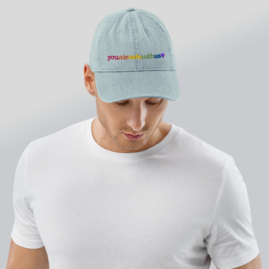 YOU ARE SAFE WITH US | Denim Hat | Front & Back Embroidery | Color Thread
