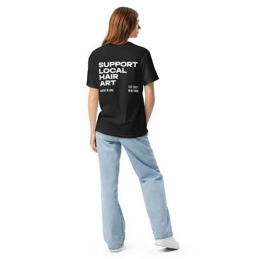 SUPPORT LOCAL HAIR ART Unisex garment-dyed heavyweight t-shirt | Back Print | Off Black