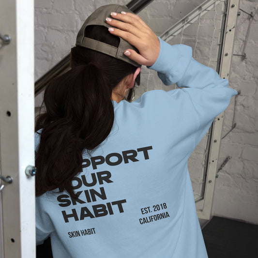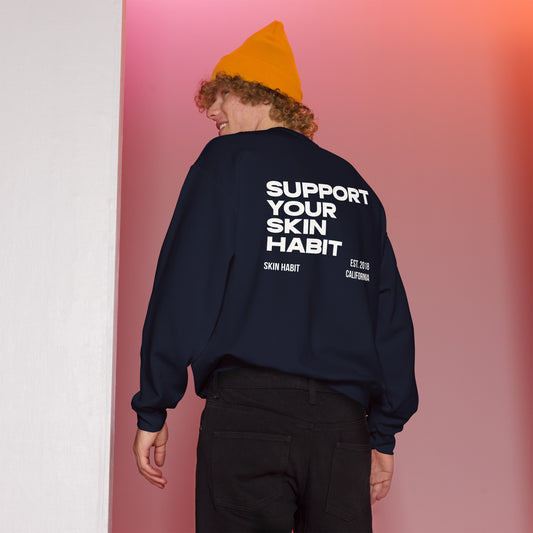 SUPPORT YOUR SKIN HABIT Unisex Sweatshirt | Back Print | Off Black