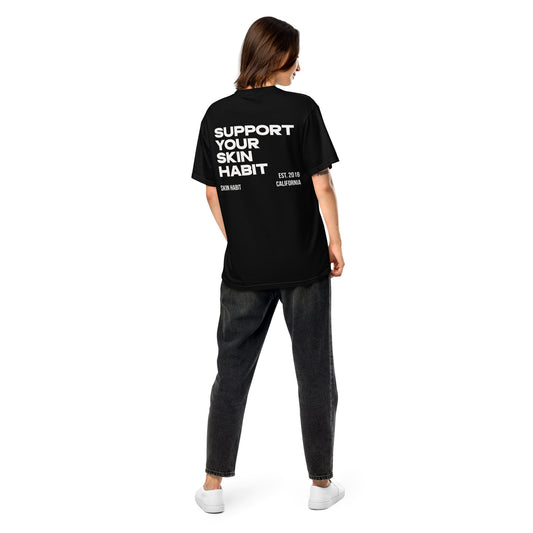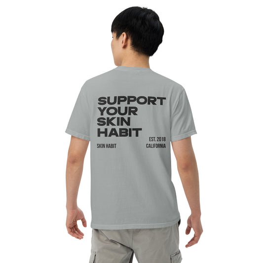 SUPPORT YOUR SKIN HABIT Unisex garment-dyed heavyweight t-shirt | Back Print | Off Black