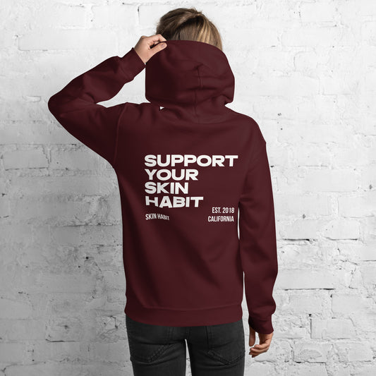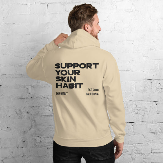 SUPPORT YOUR SKIN HABIT Unisex Hoodie | Back Print | Off Black